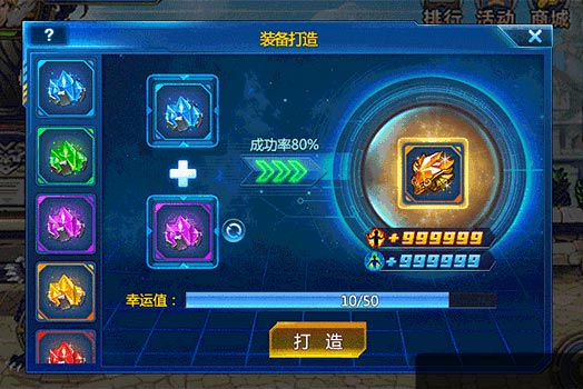 装备锻造是新装备的一种新玩法。通过消耗不同的锻造材料提升装备属性。锻造有可能失败,失败可以增加幸运值。当幸运值达到100可以触发幸运打造。幸运打造可100%完成装备锻造,并清空幸运值。